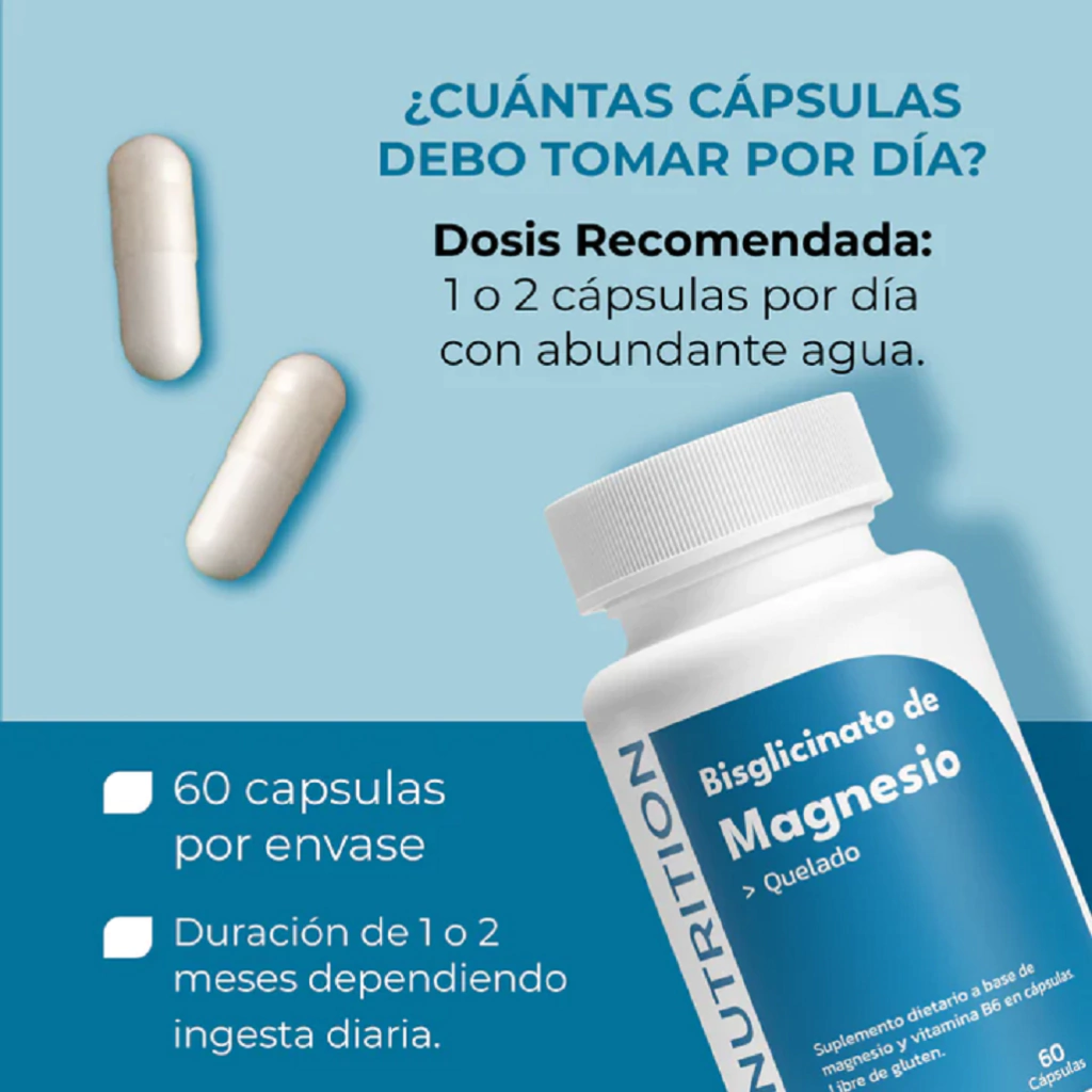 Descubrí el Bisglicinato de Magnesio Quelado, un suplemento de alta calidad que aporta 1000mg por porción, equivalente a 200mg de magnesio elemental con excelente absorción. Además, incluye 1.3mg de Vitamina B6, fundamental para potenciar el metabolismo energético y la salud del sistema nervioso.